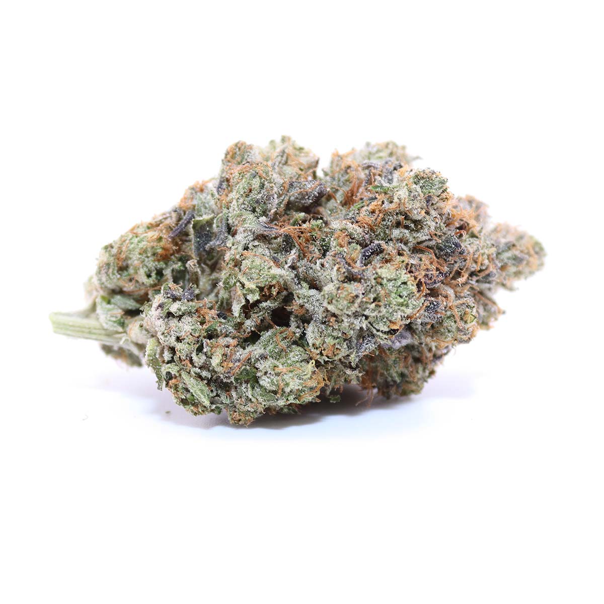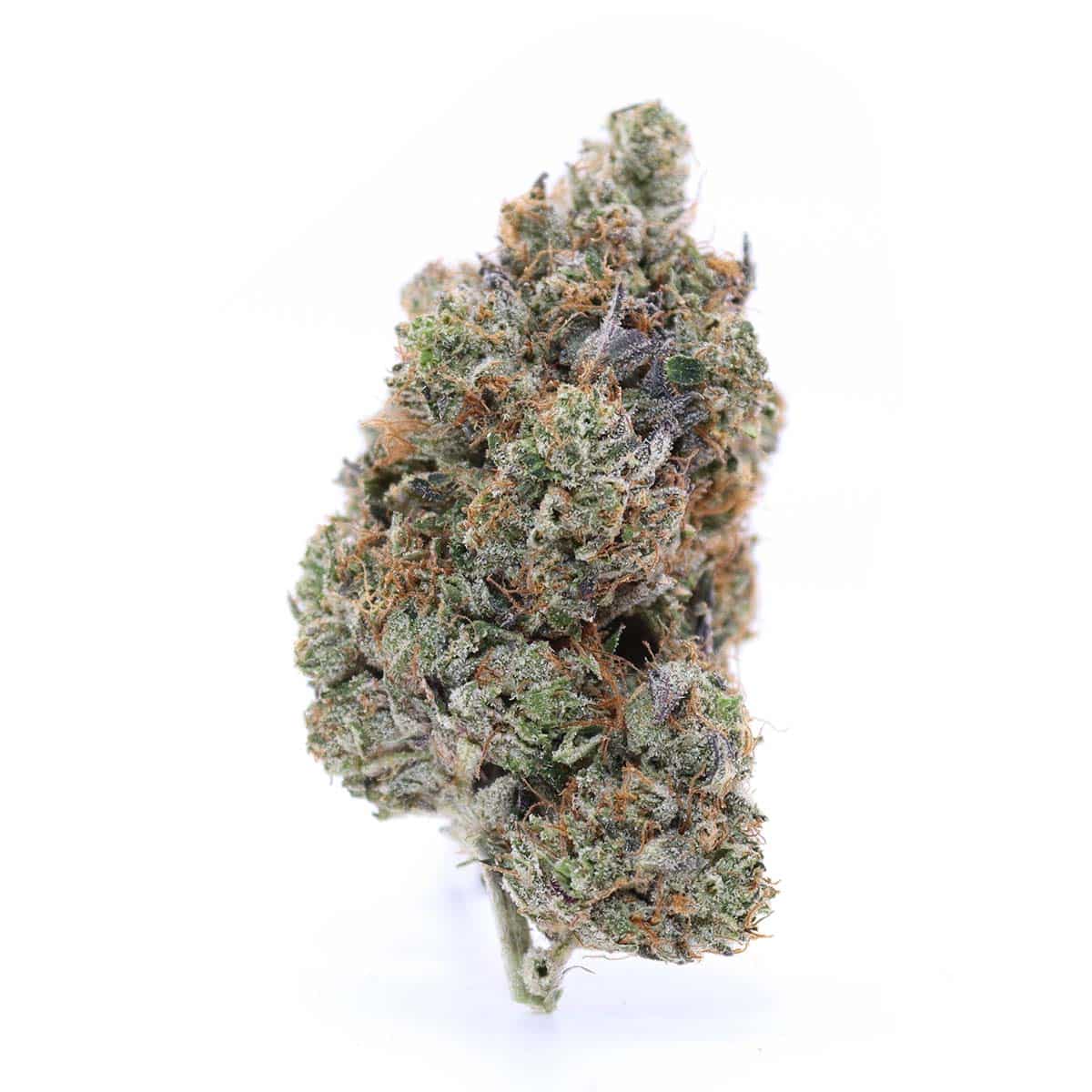 The buds are dense and heavy with a thick layer of frosty trichomes, giving off a pungent diesel and earthy skunk aroma that hits hard the moment you open the bag. It’s a couch-lock strain through and through – meant for ending your day or shutting your body down when pain, stress, or tension won’t let go.
