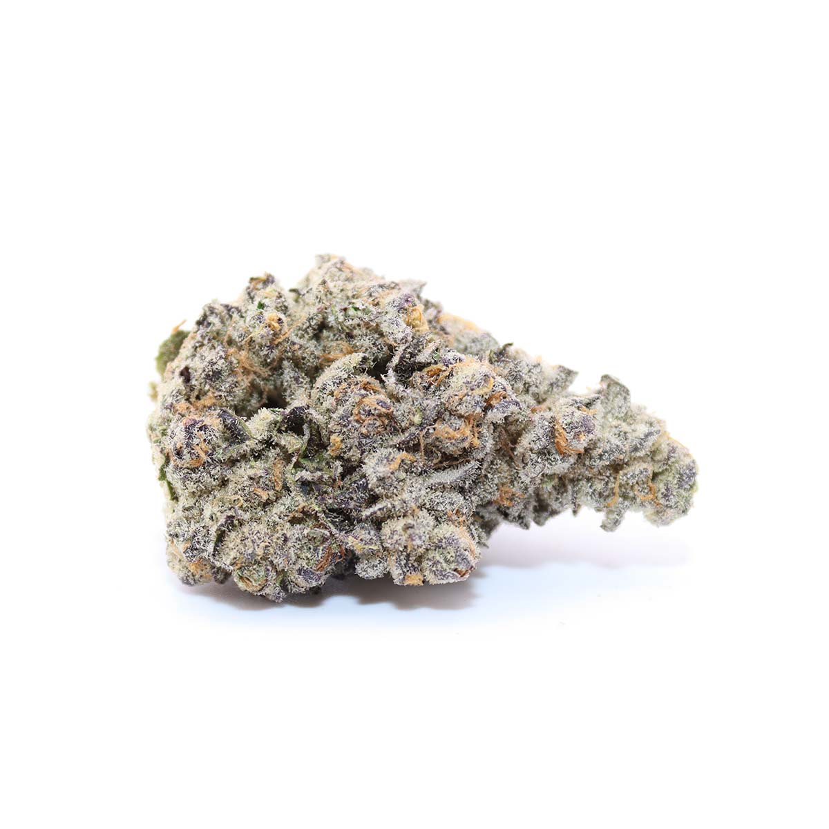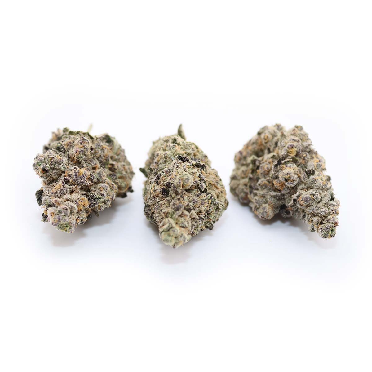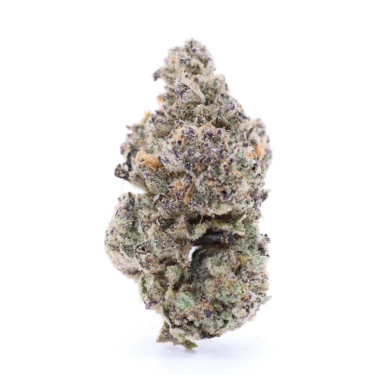 Its buds are dense and sticky, with deep green and purple tones accented by fiery orange pistils and a heavy coating of frosty trichomes. The aroma hits you immediately upon opening the bag, with sweet cream, gassy diesel, and a touch of earthy vanilla.
