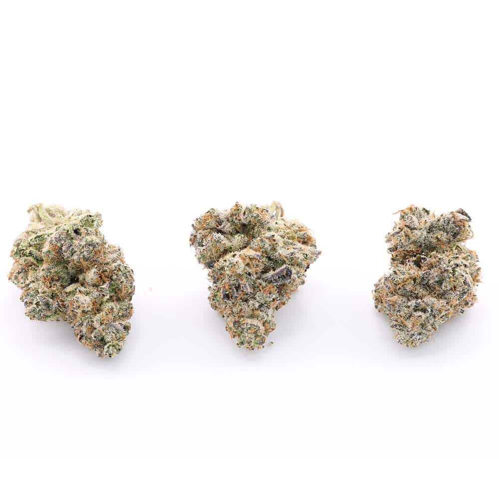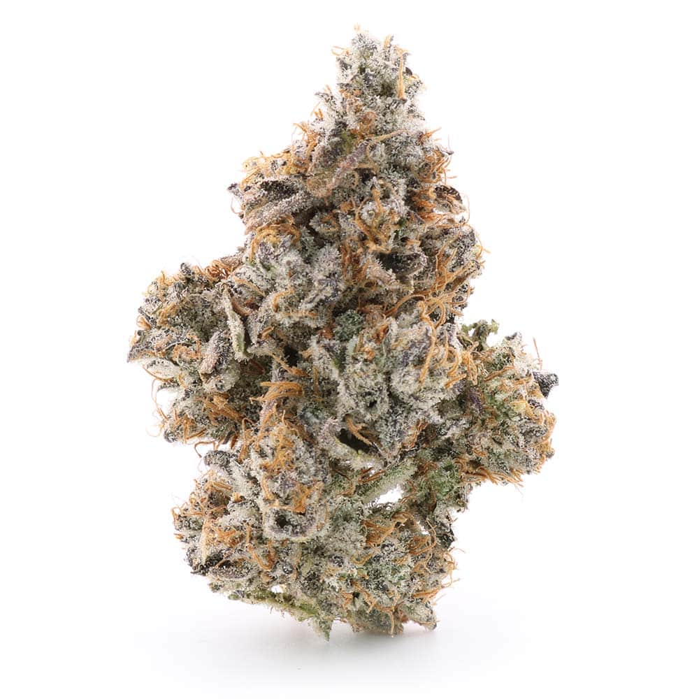Visually, this strain lives up to its name. The buds are completely frosted with glistening trichomes, accented by vibrant orange hairs throughout. The structure is dense and knobby, forming prolific nodules that reflect its top-shelf AAAA quality.